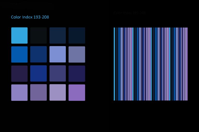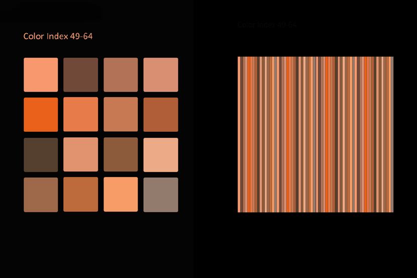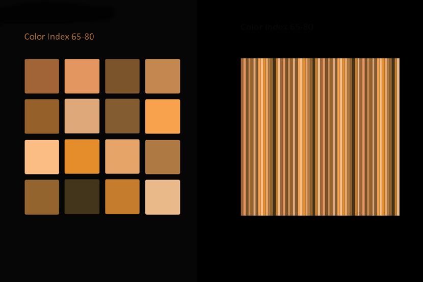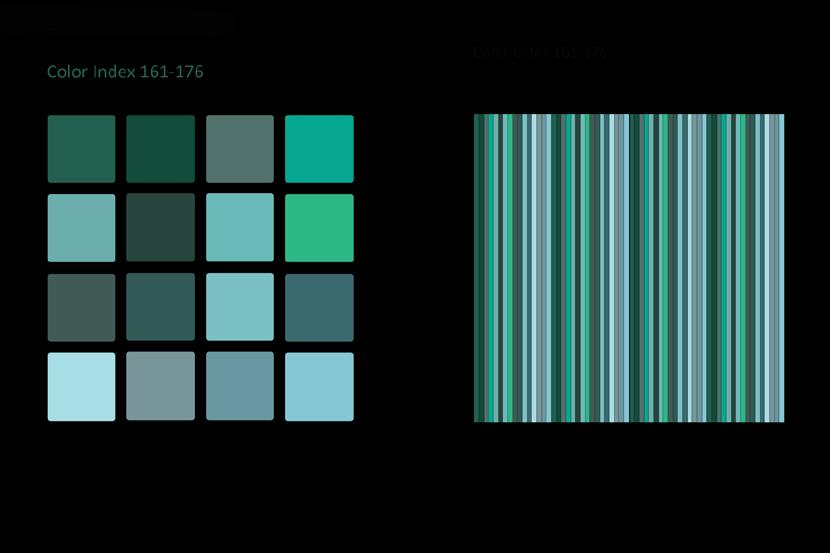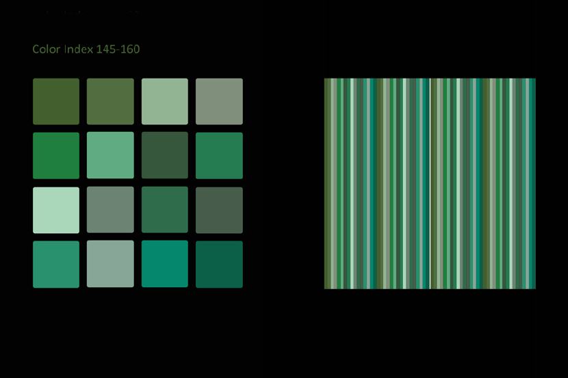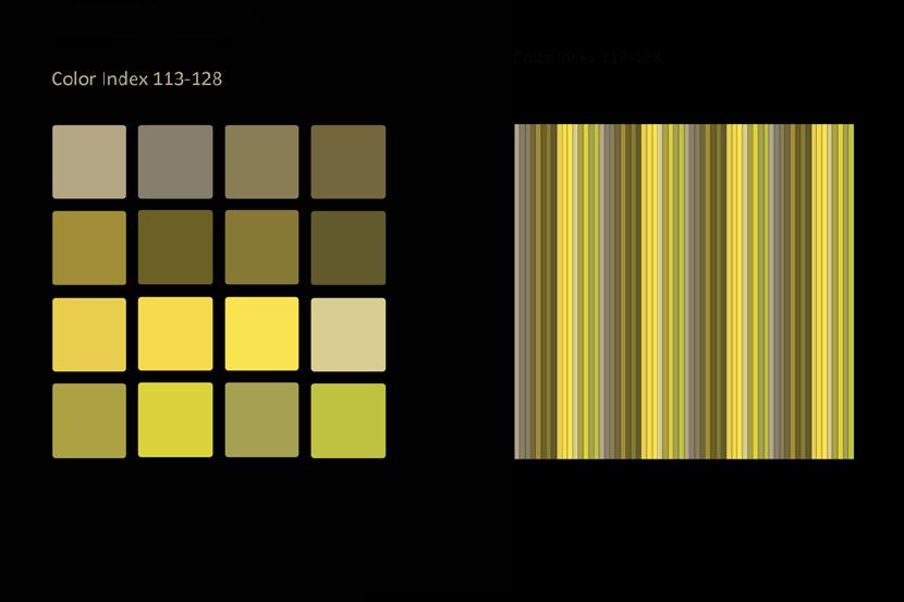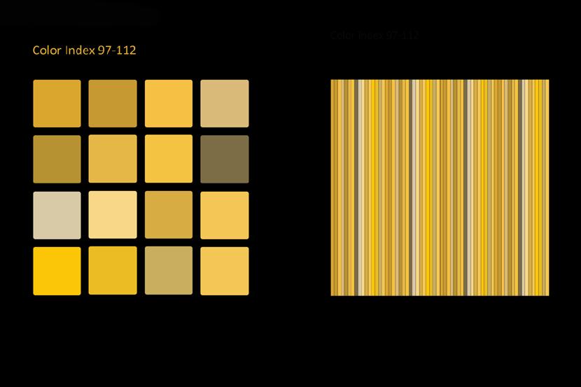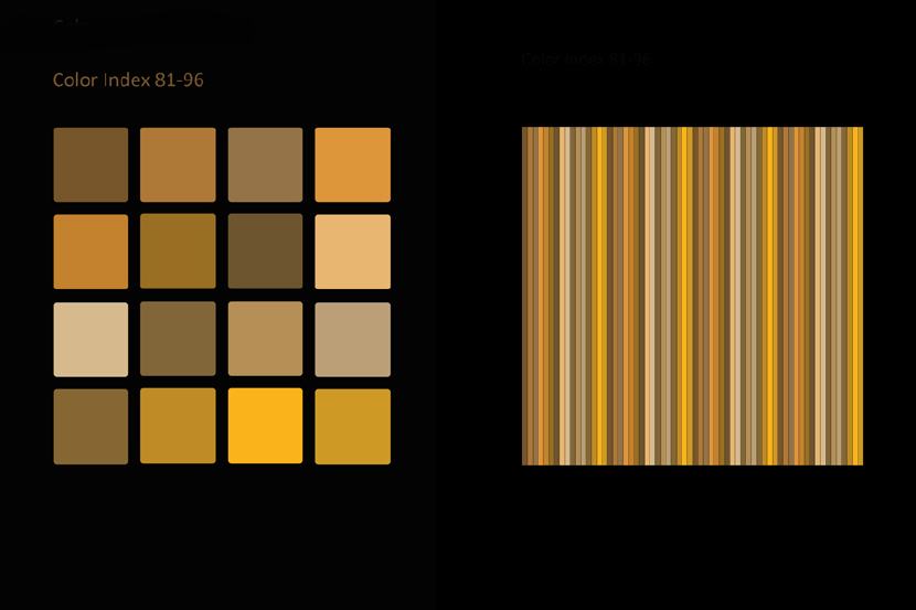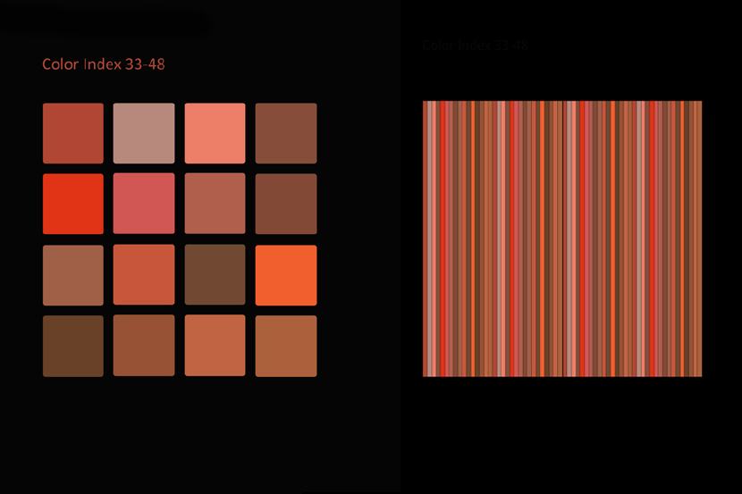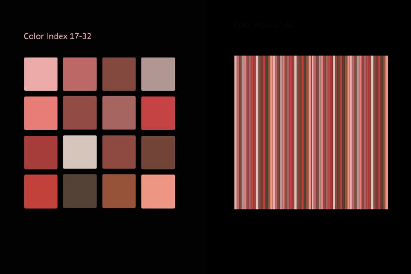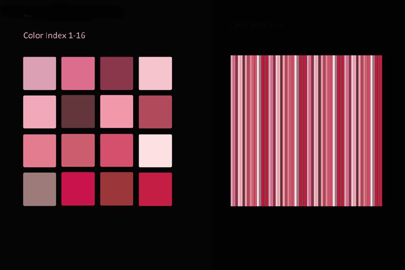 Das Auffallendste jeder Struktur und jedes Musters ist seine Farbe. Dieselbe Struktur oder dasselbe Muster kann in einer anderen Farbgebung ganz anders aussehen und es sind unendlich viele Farbvariationen machbar. Viele Faktoren sind beteiligt, wenn man bewusst ein Farbschema produzieren will, so dass es umso faszinierender ist, wenn man eine zufällige Entsprechung zwischen Naturphänomenen und künstlicher Kreation entdeckt! Die Natur ist mir dabei eine unerschöpfliche Inspirationsquelle. Flora und Fauna bieten in Bezug auf Farbe und Muster fertige Designmodelle an. Himmel, Erde und Wasser zeigen während des fortwährenden Schauspiels von Sonne und Mond am Tag und in der Nacht veränderliche Farb- und Musterpaletten an. Ich muss nur genau beobachten und mir auch die Zeit nehmen dies zu tun.