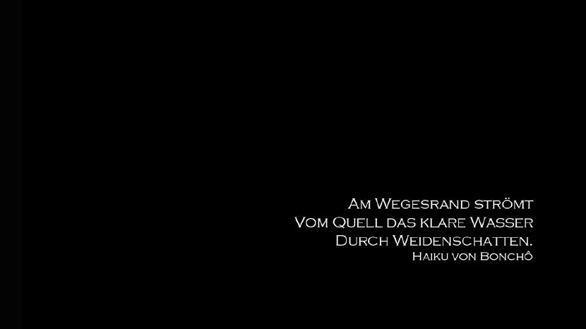 So sagte Bashô, der Altmeister der Gedichtsform. Denn das Ziel der Haiku-Dichtung, die flüchtige Stimmung eines Augenblicks durch die knappe Form eines Dreizeilers zum Ausdruck zu bringen, lässt sich nur erreichen durch Schlichtheit der Sprache und ein Gemüt, das sich der unmittelbaren Sinneswahrnehmung ganz hingibt. Und damit nähert sich diese klassische japanische Gedichtform dem Geist des Zen-Buddhismus. Um die Mitte des 15. Jahrhunderts wurde das Haiku - damals noch Hokku genannt - zur beliebtesten Gedichtform der Japaner. Meine Bilder sind die moderne Antwort auf eine Auswahl dieser frühen Gedichte.